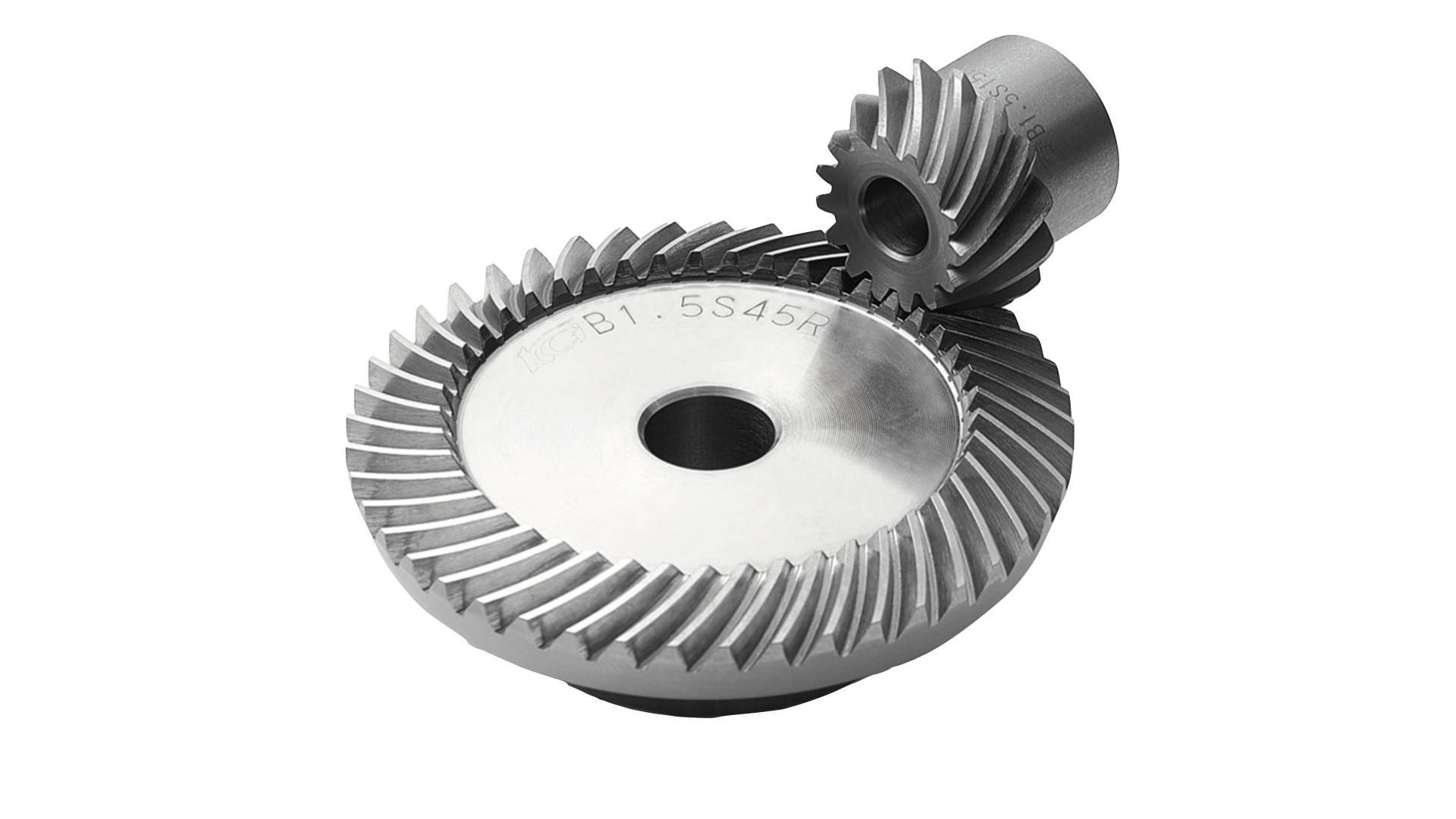 - KG offers 1:1.5, 1:2, and 1:3 spiral bevel gear ratios. Comes in SCM440, S45C, SS304 and brass.